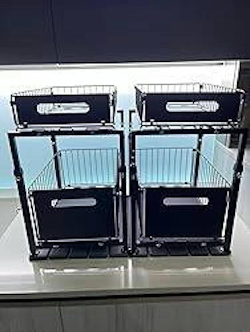 Design: Sistema a 2 livelli con cestelli a scorrimento fluido.